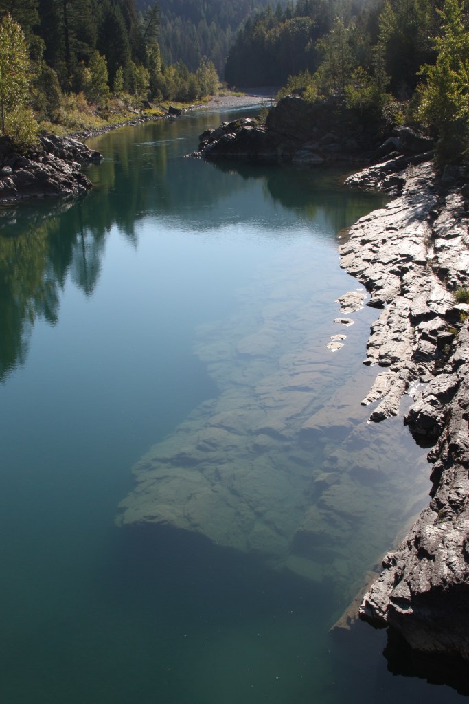 This was the very first picture I took on this trip. It was a beautiful sunny day in Glacier National Park and we went for a bike ride around Lake McDonald. This is from a bridge over the river before we got to the lake. The clarity of the water just called to me.