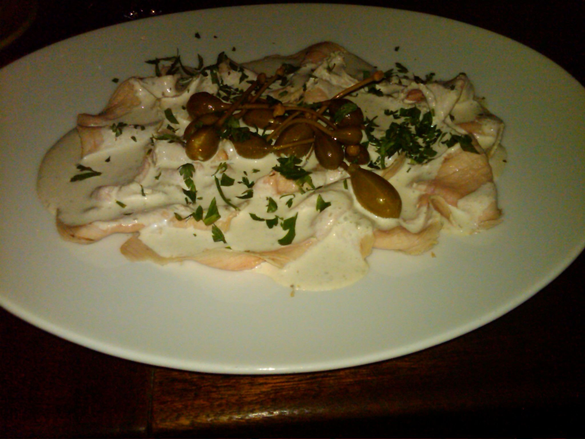 After a search of my memory and Google Maps, I was able to actually locate the restaurant in Salzburg. Flavour…weinbar restaurant is still there and they still have the same dish on the menu. It turned out to be Vitello Tonnato, an Italian dish made with boiled veal in creamy tuna sauce which is served cold. I highly recommend it!