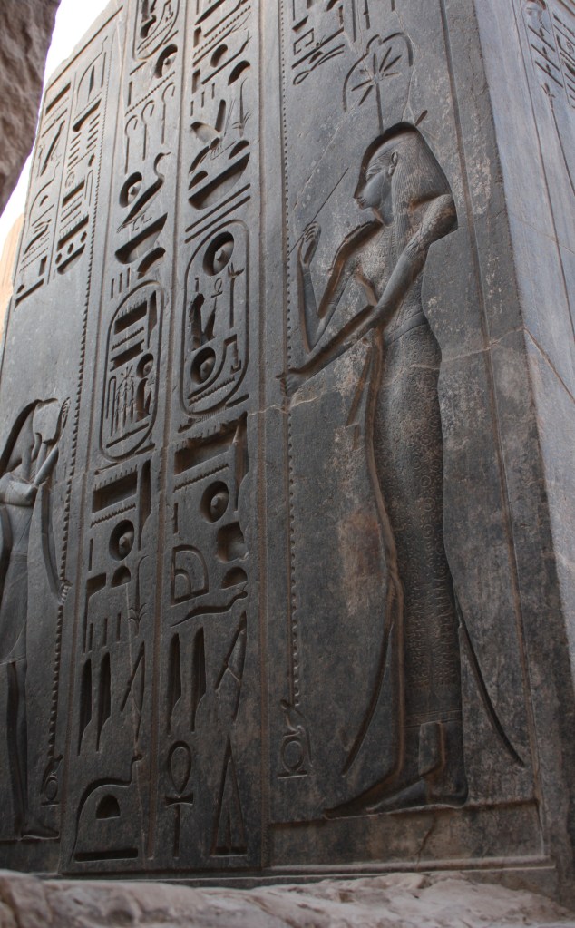 Our personal guide Ahmed knew that I was an engineer and writer. At Karnak, he pointed out the temple of Ptah – the god of architects and engineers. At Luxor, he showed us an image of the goddess of writing and knowledge – Seshat. (My new favorite goddess.) The image is carved into the back of the throne of one of the seated Ramses II statues inside the temple. You would never notice it unless someone pointed it out.