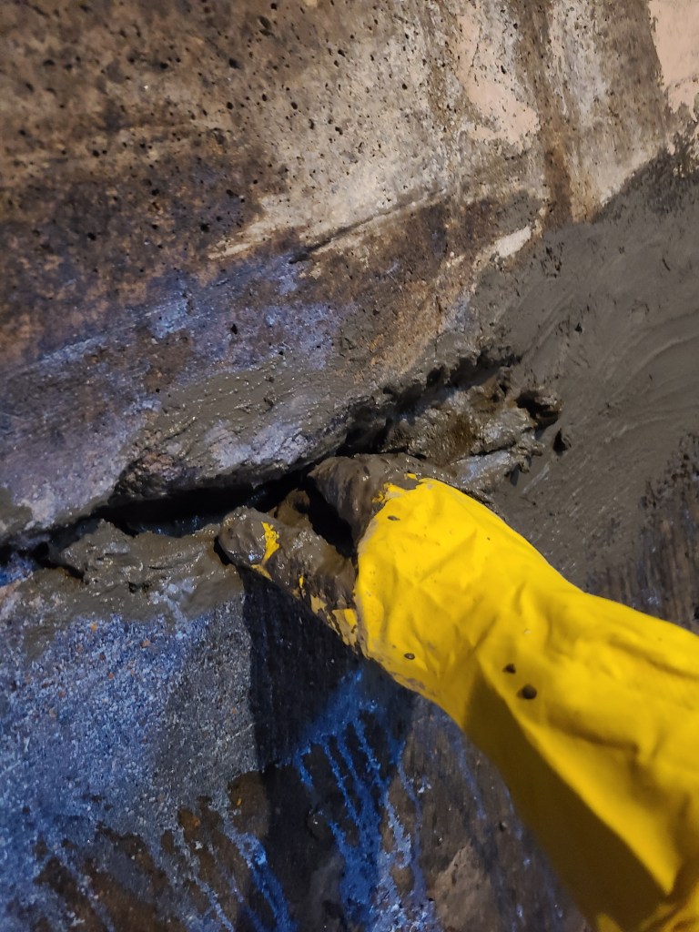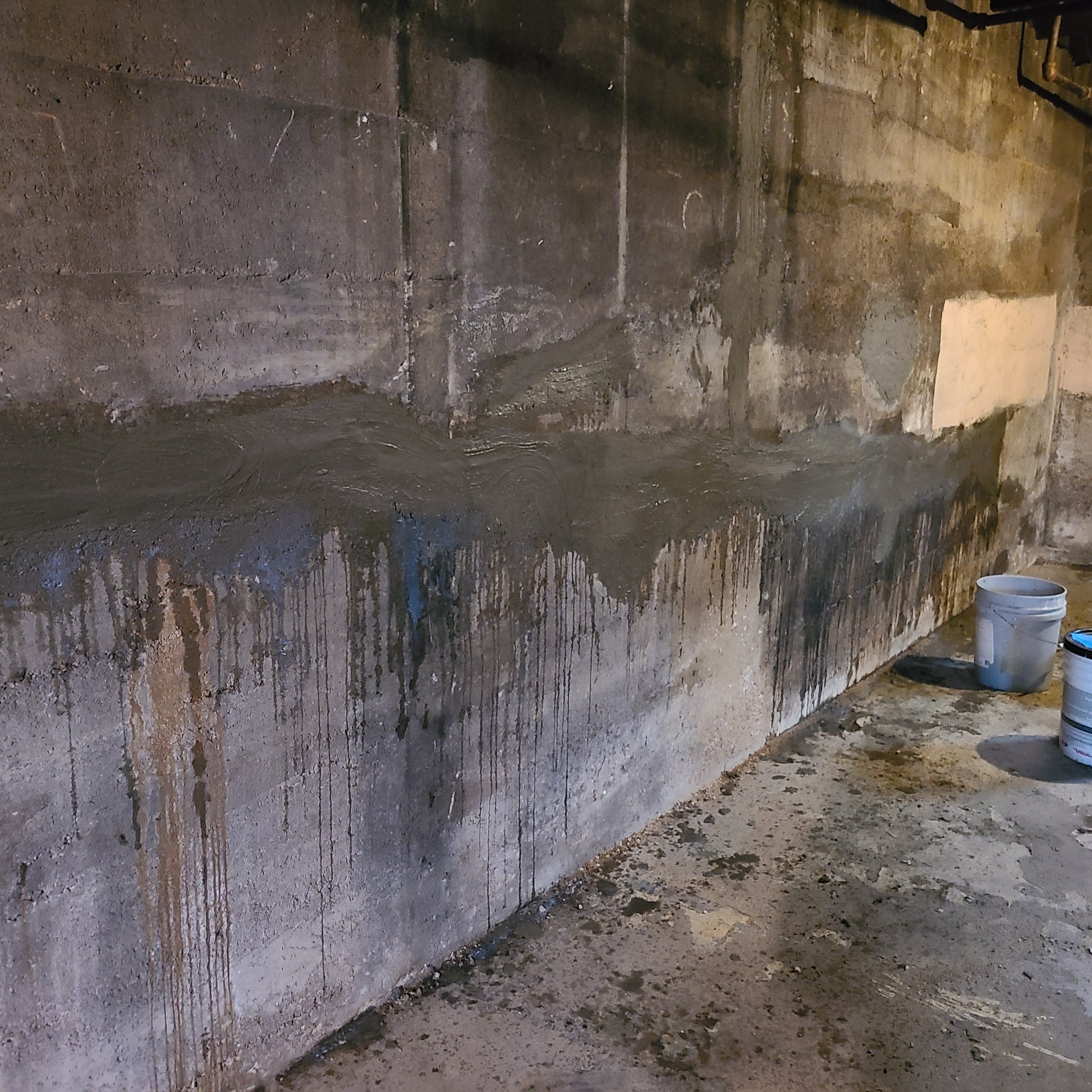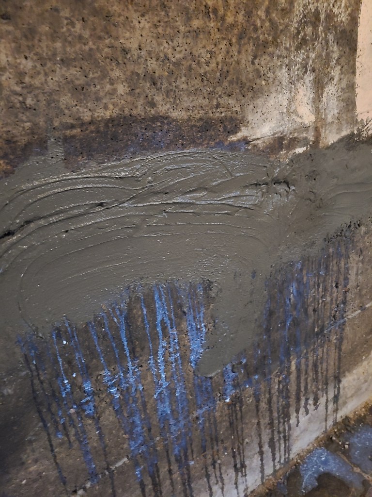 First, I filled in the joints in the floor with some left over hydraulic cement to provide a smooth flat surface for the floor. Any defects, dips or grooves in the concrete would be translated to the floor above it. Next, I put down the underlayment leaving a gap along the walls. This was all done in a weekend. I then put the laminate down during the week, working a couple of hours a night. It took some practice and some mistakes to get the engineered laminate to go together consistently, it is very brittle and the joints break easily.