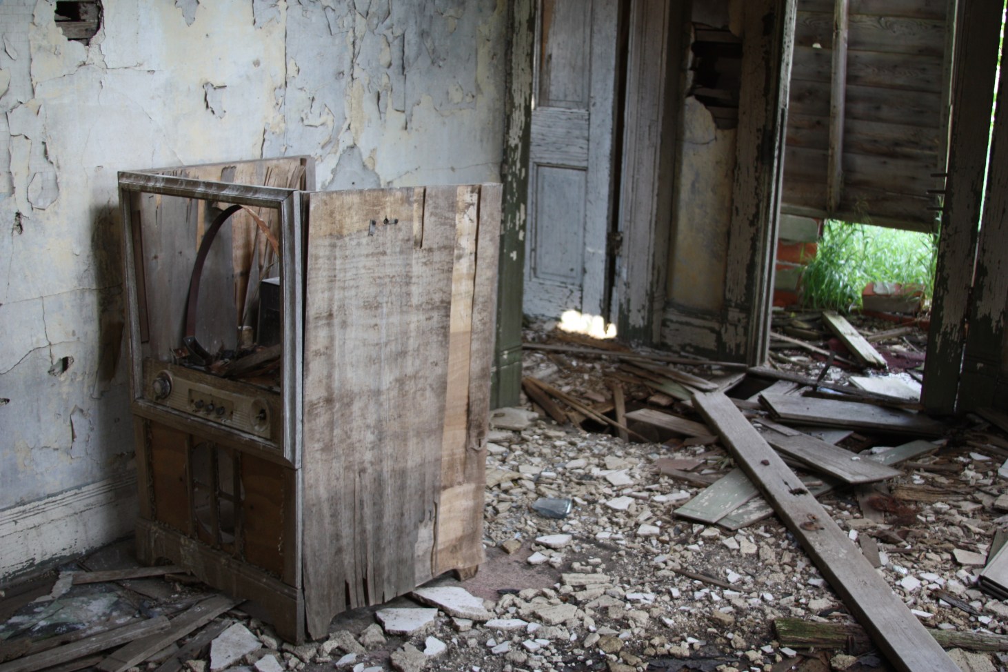 This image was taken in an abandoned farmhouse in Nebraska. I found it odd that the television was still in mostly one piece, possibly even sitting where it was last used how many decades ago.